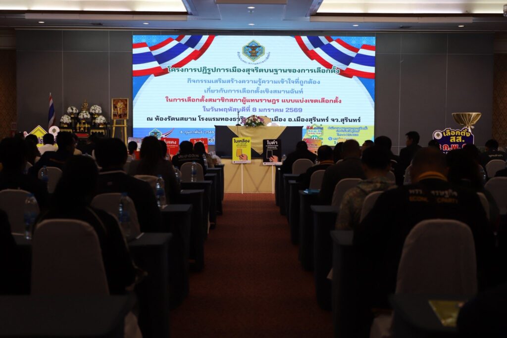 สำนักตรวจเงินแผ่นดินจังหวัดสุรินทร์ ร่วมเป็นเกียรติในพิธีเปิดโครงการปฏิรูปการเมืองสุจริตบนฐานของการเลือกตั้งกิจกรรมเสริมสร้างความรู้ความเข้าใจที่ถูกต้องเกี่ยวกับการเลือกตั้งเชิงสมานฉันท์Podcast, กิจกรรมประชาสัมพันธ์, กิจกรรมอื่น ๆ, กิจกรรมเพื่อสังคม, ข่าวที่น่าสนใจ, ข่าวประชาสัมพันธ์, คลังความรู้, ภาพกิจกรรม, สื่อวีดิทัศน์มกราคม 14, 2026มกราคม 14, 2026 Post Views: 95