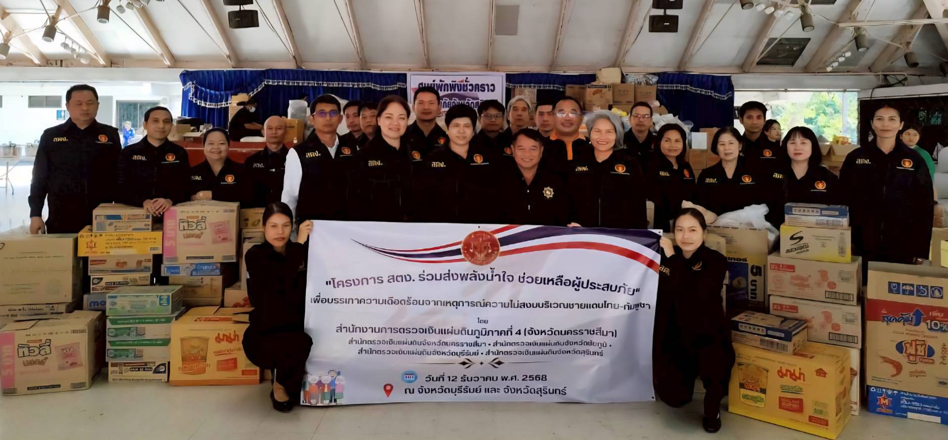 สำนักตรวจเงินแผ่นดินจังหวัดสุรินทร์ ร่วมมอบสิ่งของยังชีพ แก่ผู้อพยพเนื่องจากสถานการณ์ การสู้รบแนวชายแดน ไทย-กัมพูชา ณ ศูนย์พักพิงชั่วคราวผู้ประสบภัยจังหวัดสุรินทร์ มหาวิทยาลัยเทคโนโลยีราชมงคลอีสาน วิทยาเขตสุรินทร์ ธันวาคม 13, 2025